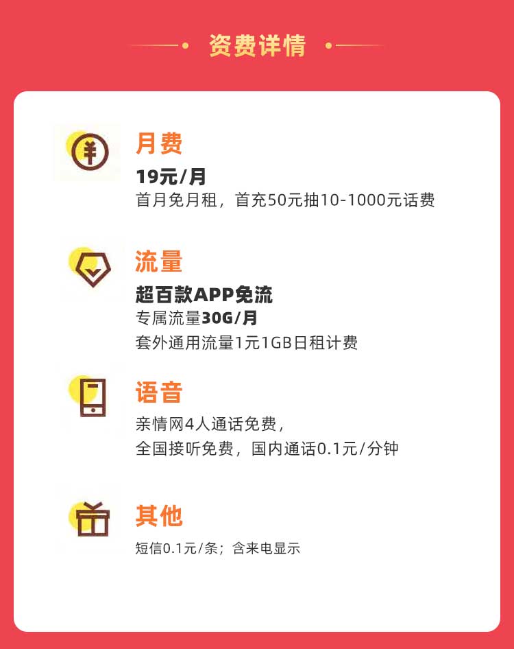 1、 本卡合约期 6 个月,活动期间享受激活首月月租费减免。合约期间不得办理过户、停机、销号、离网(终止移动公司提供的网络服务)等操作,如客户违反前述承诺,需返还已享受的优惠。