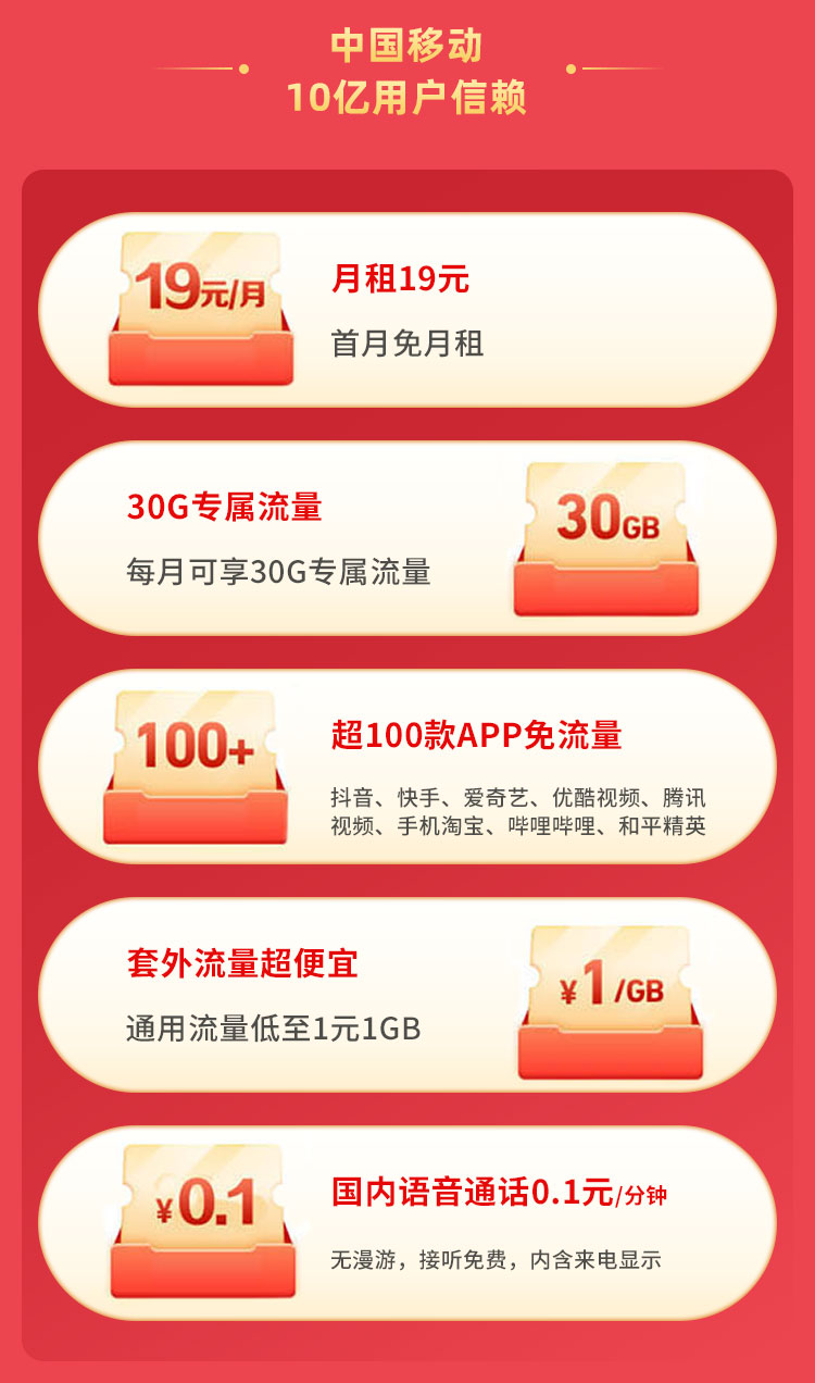 6、套餐生效后可享受共 13 款 APP 定向免流权益(10 款中国移动精品 APP+自选 3 款热门 APP)